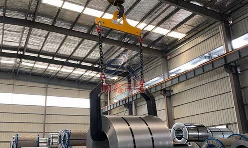 翻轉(zhuǎn)吊具通過機械剪力原理,對立式擺放的卷鋼進行單邊抓取,來完成卷鋼的裝卸,當(dāng)改變重力點時,可以對卷鋼進行翻轉(zhuǎn),作業(yè)時不傷鋼卷。其吊耳采用加厚處理,焊縫飽滿牢固、延長使用壽命。